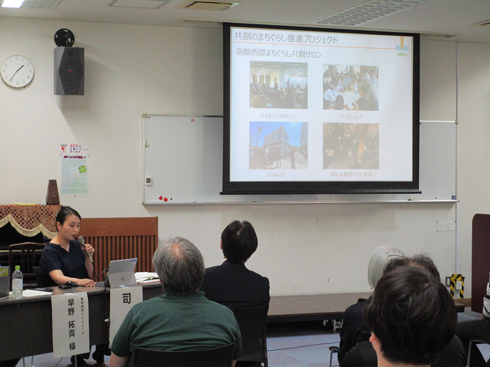 函館市西部まちぐらしデザイン室から、函館市西部地区再整備事業基本方針に基づく市の取組について紹介を行いました。