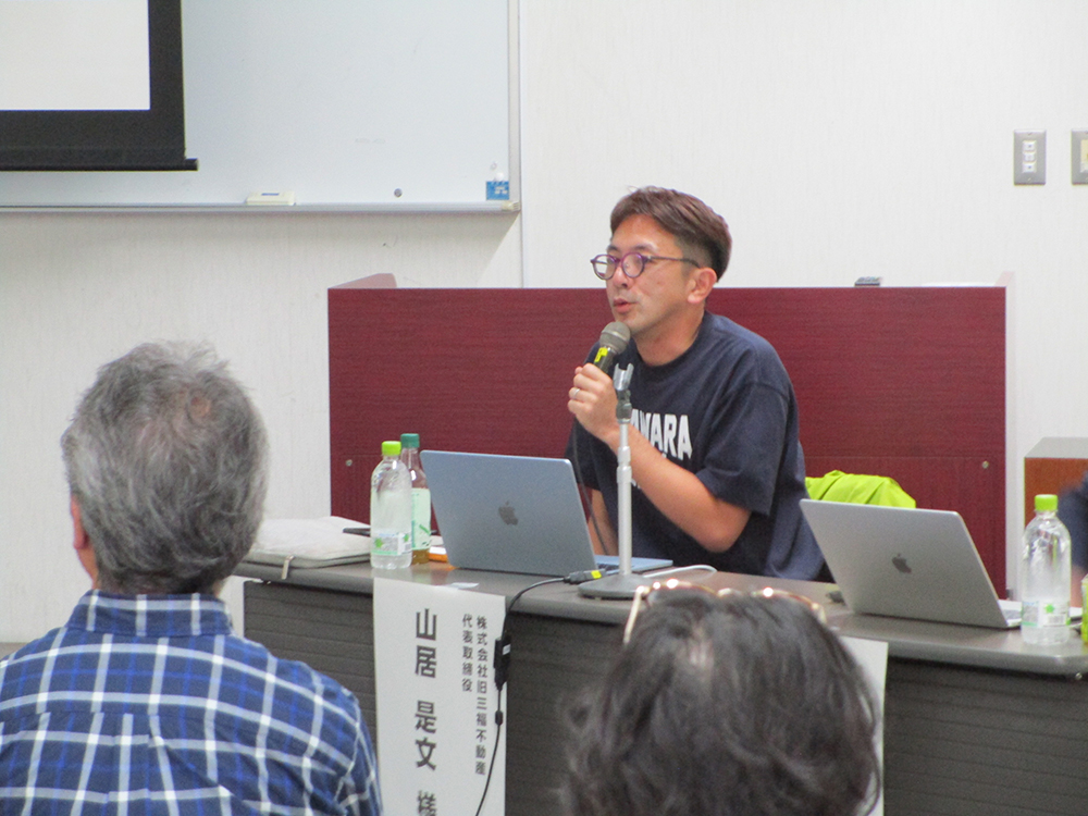 今回は、西部地区の課題の一つである空家問題について、リノベーションによる再生、利活用、移住・関係人口の増加を促すためのヒントを探るため、小田原市を拠点に、古民家や空家のリノベーションなどを通じてまちの魅力を創出している山居是文氏を招き、トークイベントを開催しました。