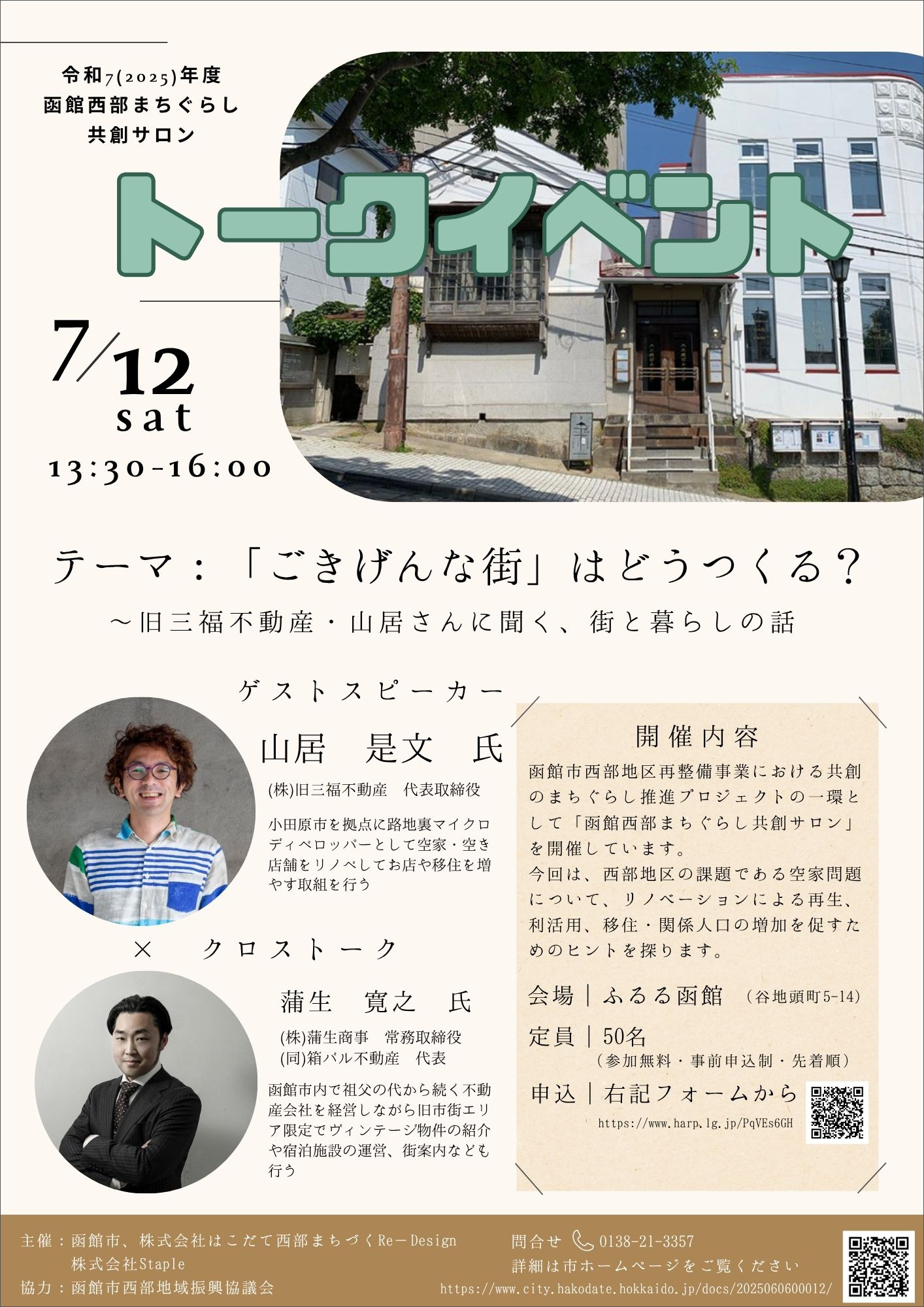 函館市(函館市西部まちぐらしデザイン室)、株式会社はこだて西部まちづくRe-Design、株式会社Staple